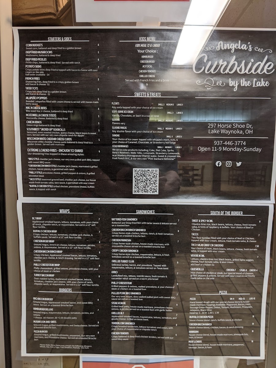 Angela's Curbside by the Lake Menu